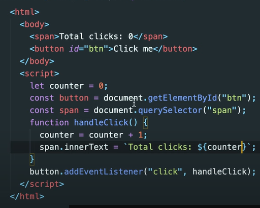 property에다가 event listener를 등록할 수 있어 그러니까 button.addEventListener 대신에
