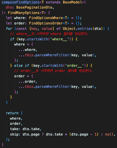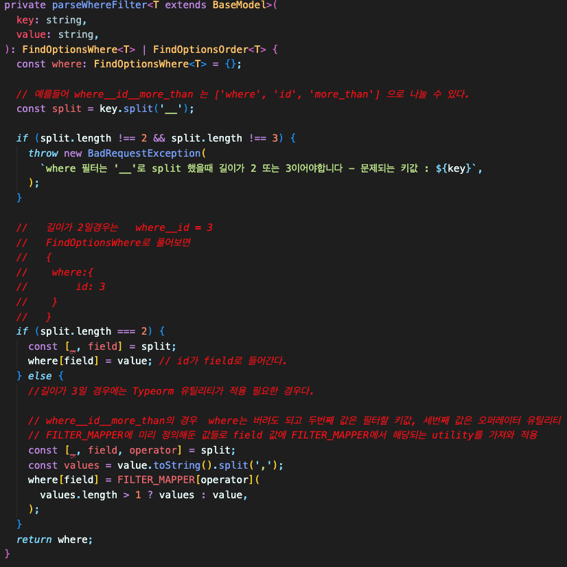 parseOrderFilter는 Where필터의 로직에 중복되어 한번더 일반화 가능 !