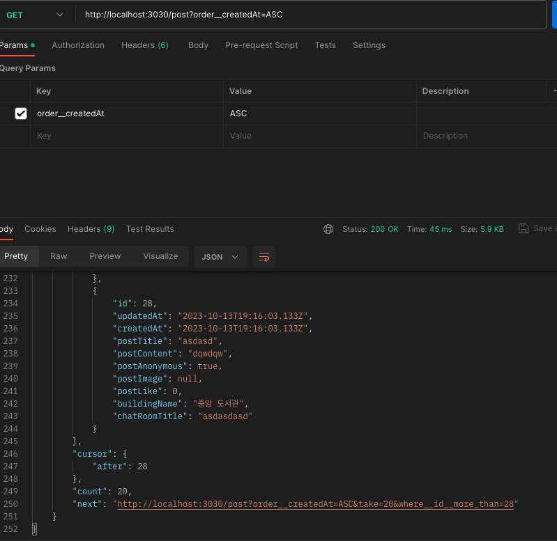 cursorPaginate 완성