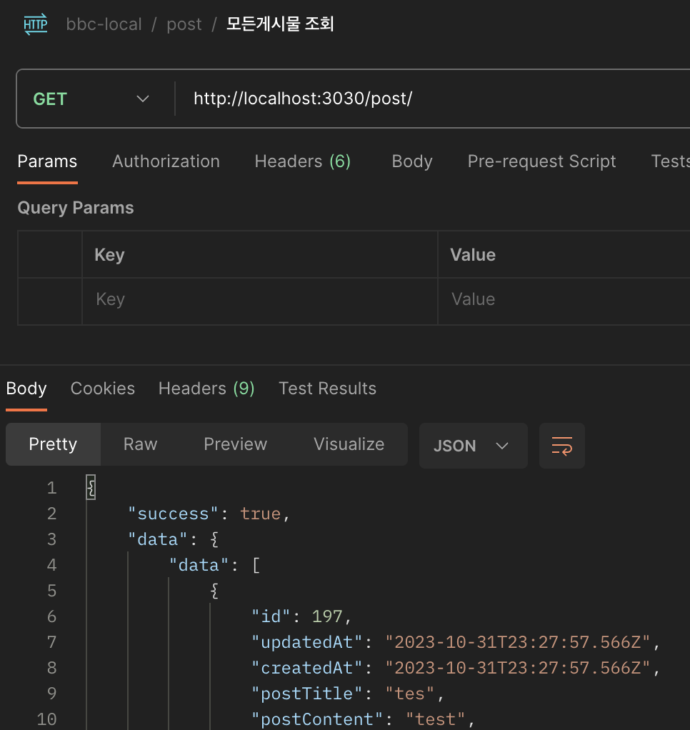 에러가 난뒤 다시 게시물 데이터베이스를 조회 해보아도 새로 생성되지 않았따.