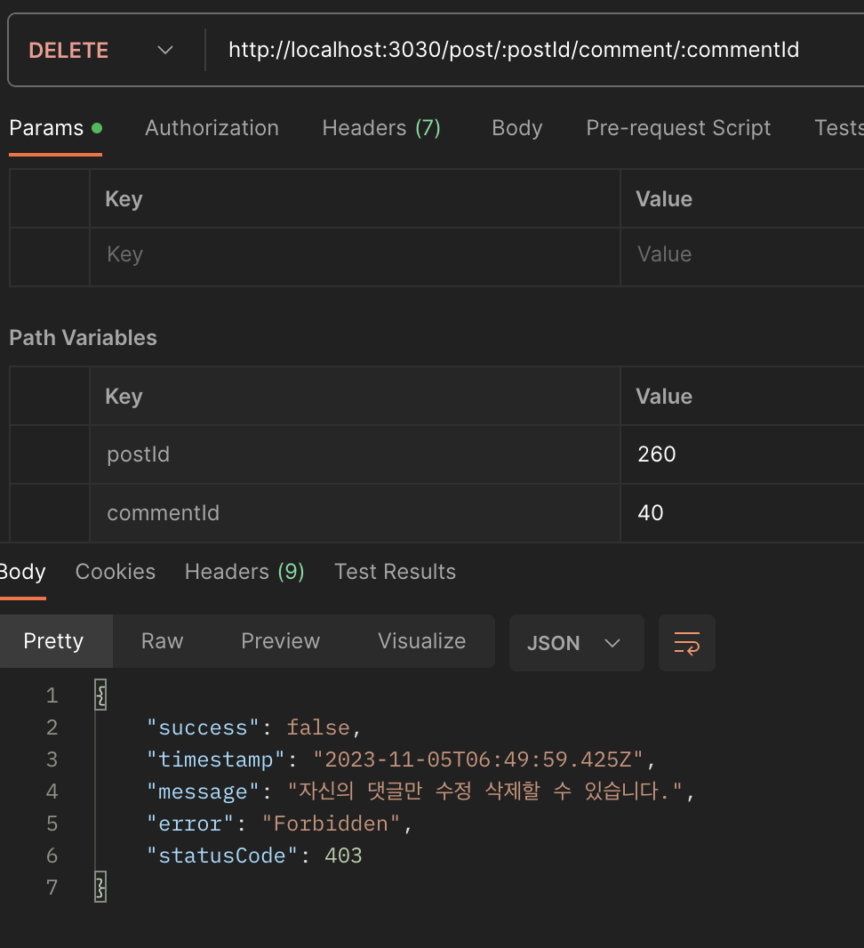| 게시글 의 댓글 갯수 API (0) | 2023.11.05 |
