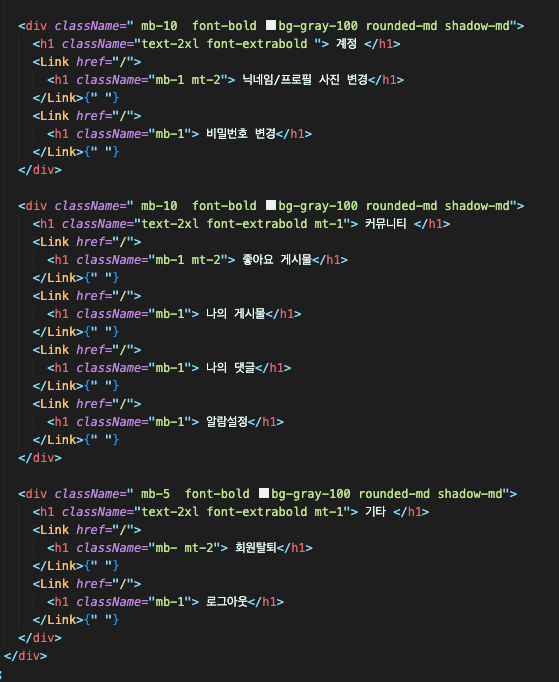 이후 해당 라우팅 별로 다시 페이지를 만들어 보자