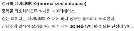 릴레이션 간의 JOIN 연산 증가 → 이로 인한 질의에 대한 응답 시간 저하