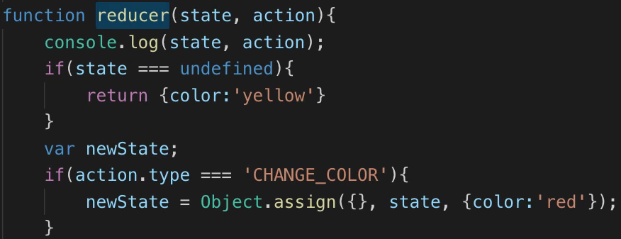 즉, reducer는 state를 입력 값으로 받고 action을 참조해서 새로운 state값을 만들어 리턴해주는 state를 가공해주는 가공자 이다.